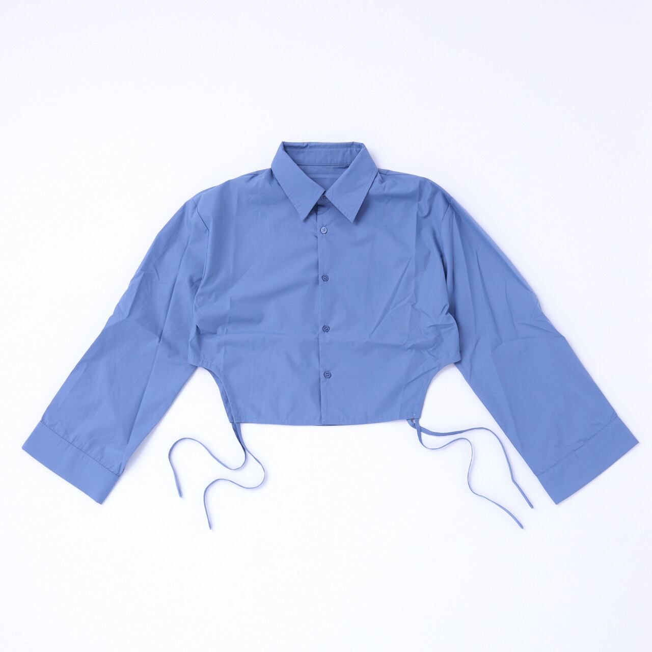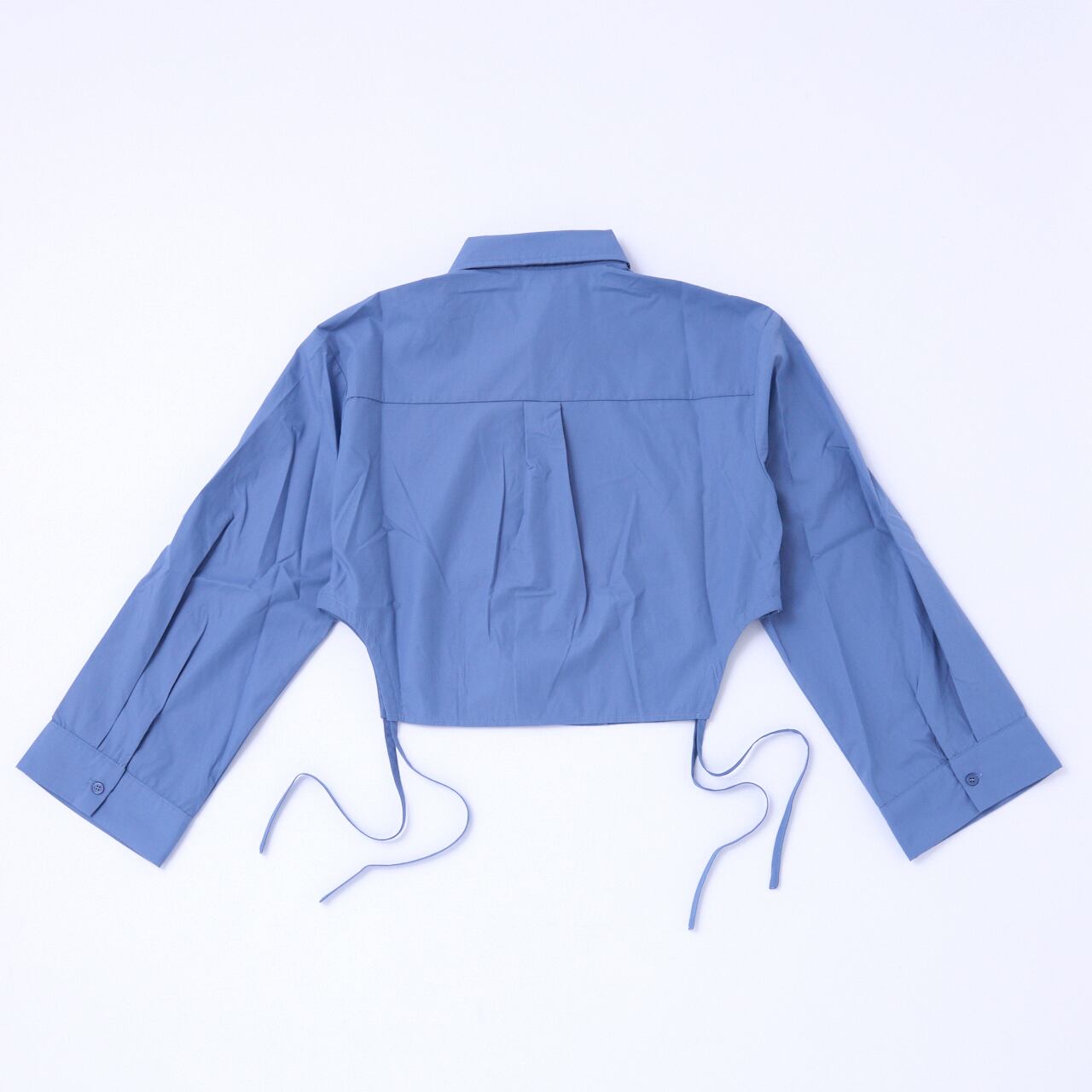 サイドギャザークロップドシャツ BLUE-GRAY / FREE