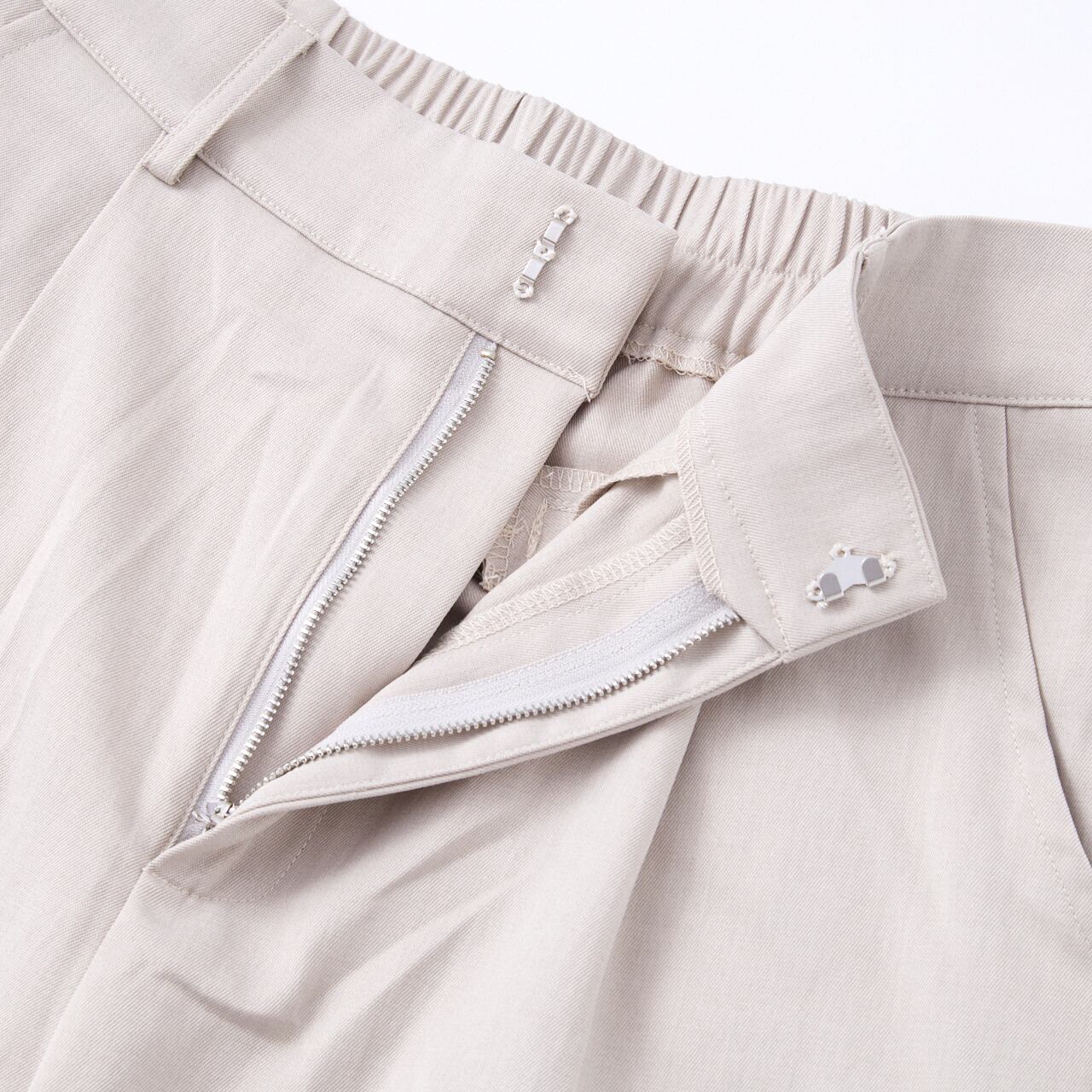 ウエスト部分にはタックを施し、リラックス感と上品さを兼ね備えた一枚です。