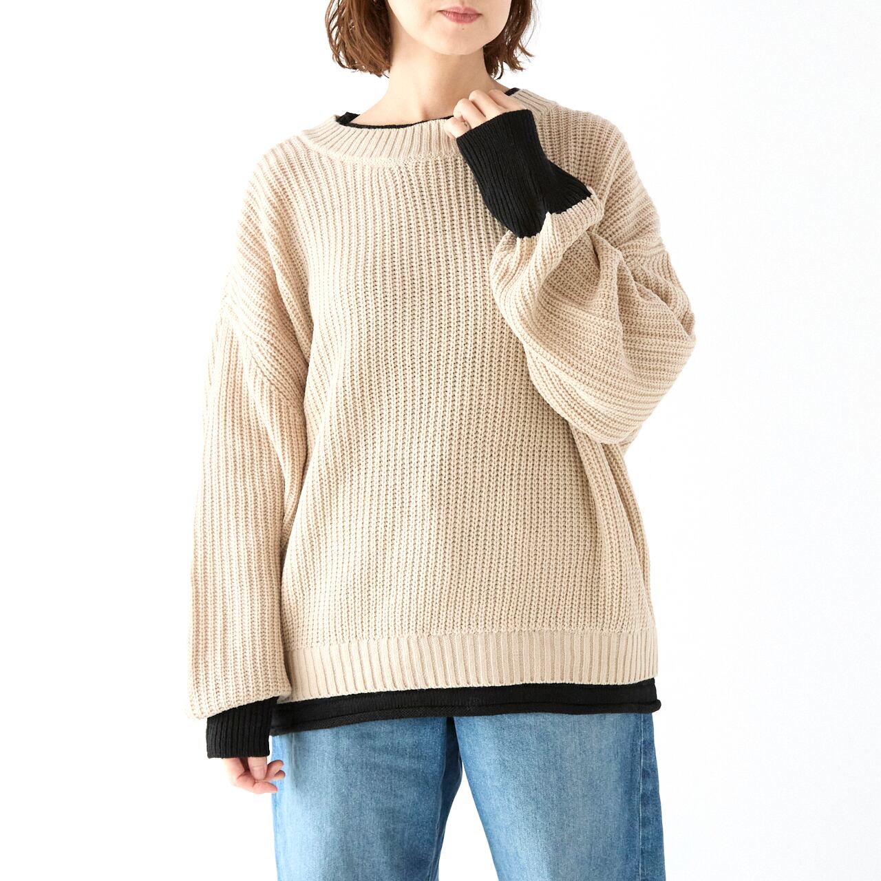 ゆったりレイヤード風ニット