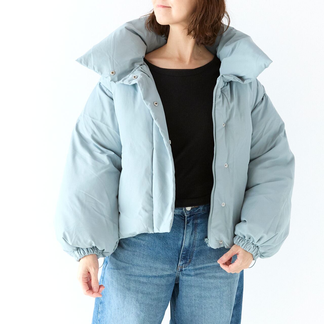 ボリュームがたっぷりなので着丈は短めに、ワイドパンツやスカート合わせにも相性良く着られます。