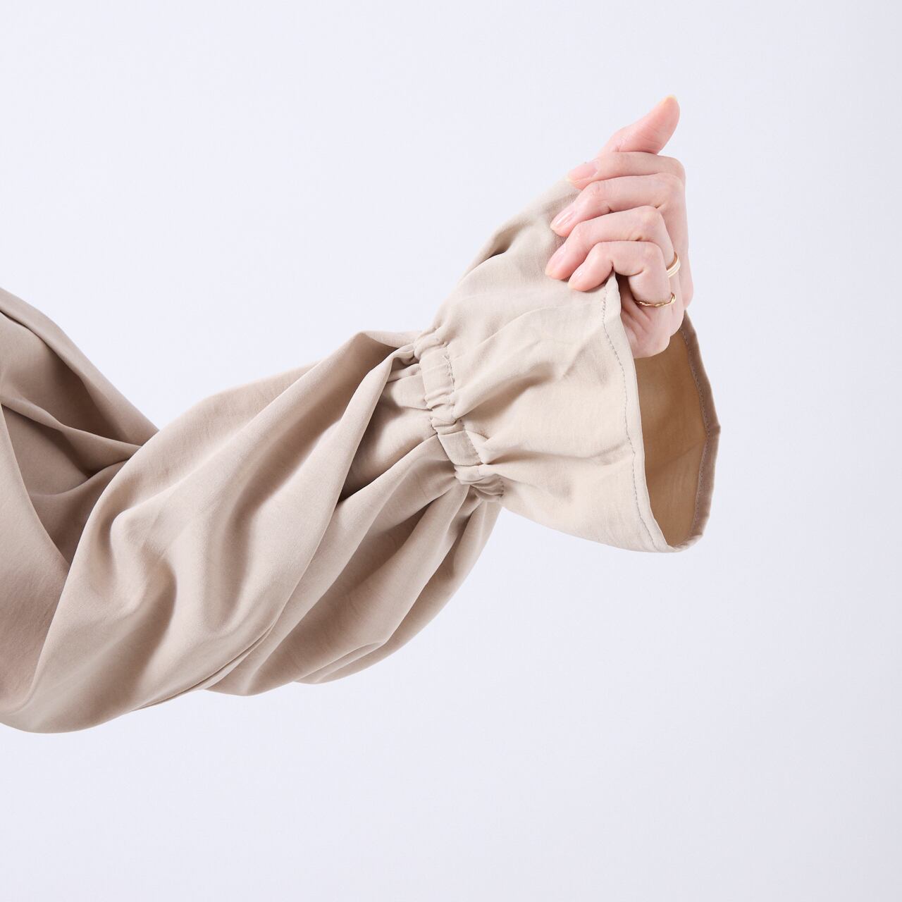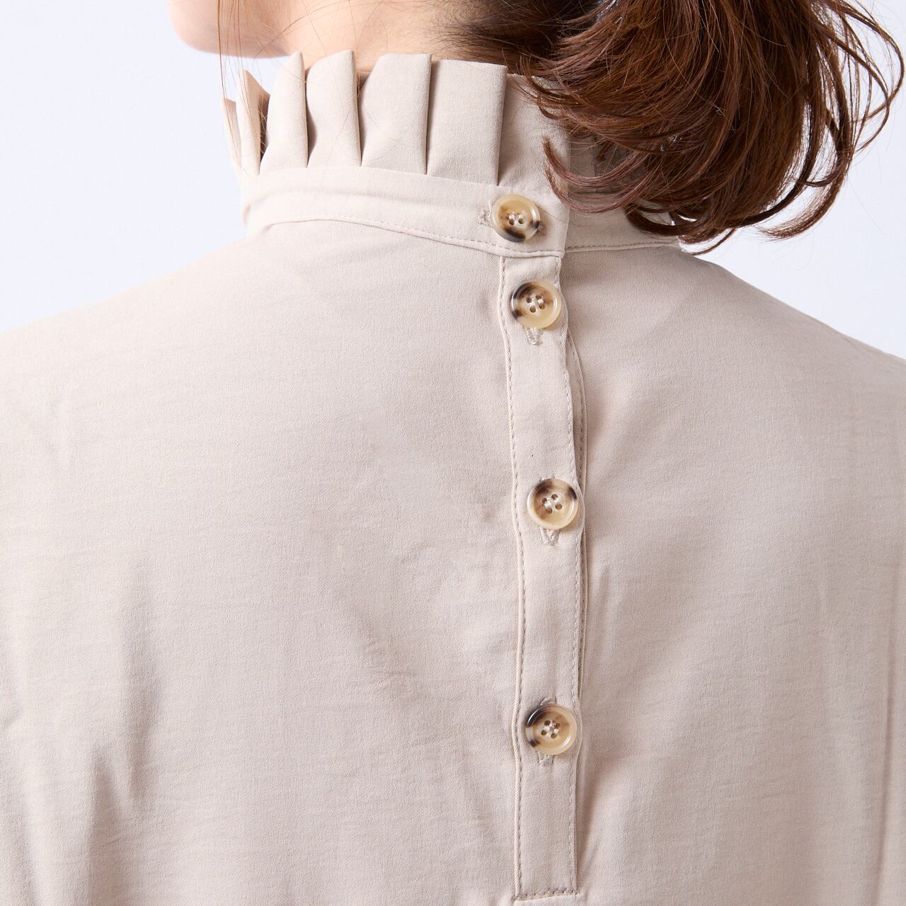 前後2ウェイでの着用が可能で、ピーチツイルの風合いが今の雰囲気!フリルのシルエットも可愛く、今季らしいこなれ感を演出!女性らしいおしゃれが楽しめるおすすめトレンドアイテムです