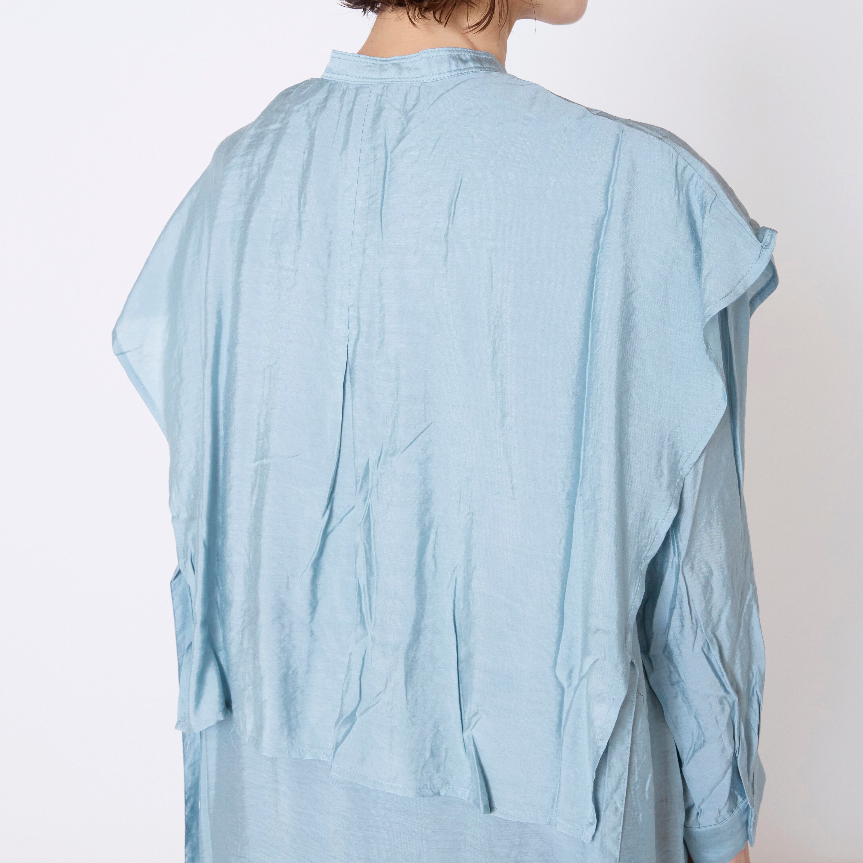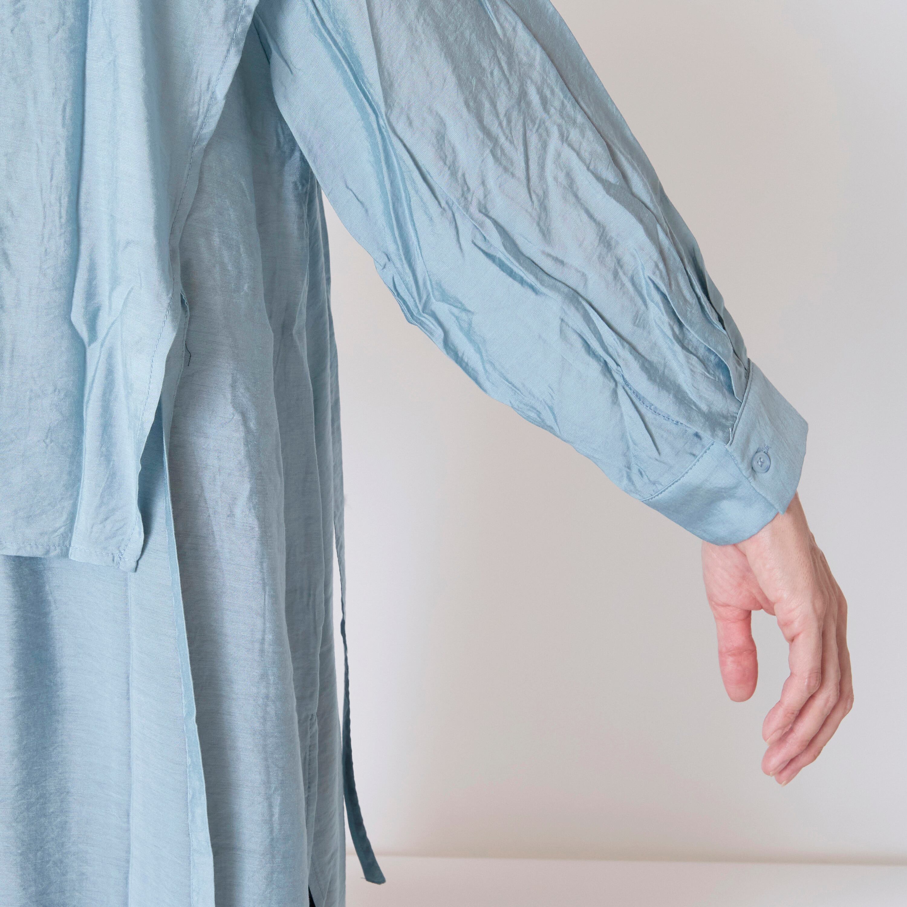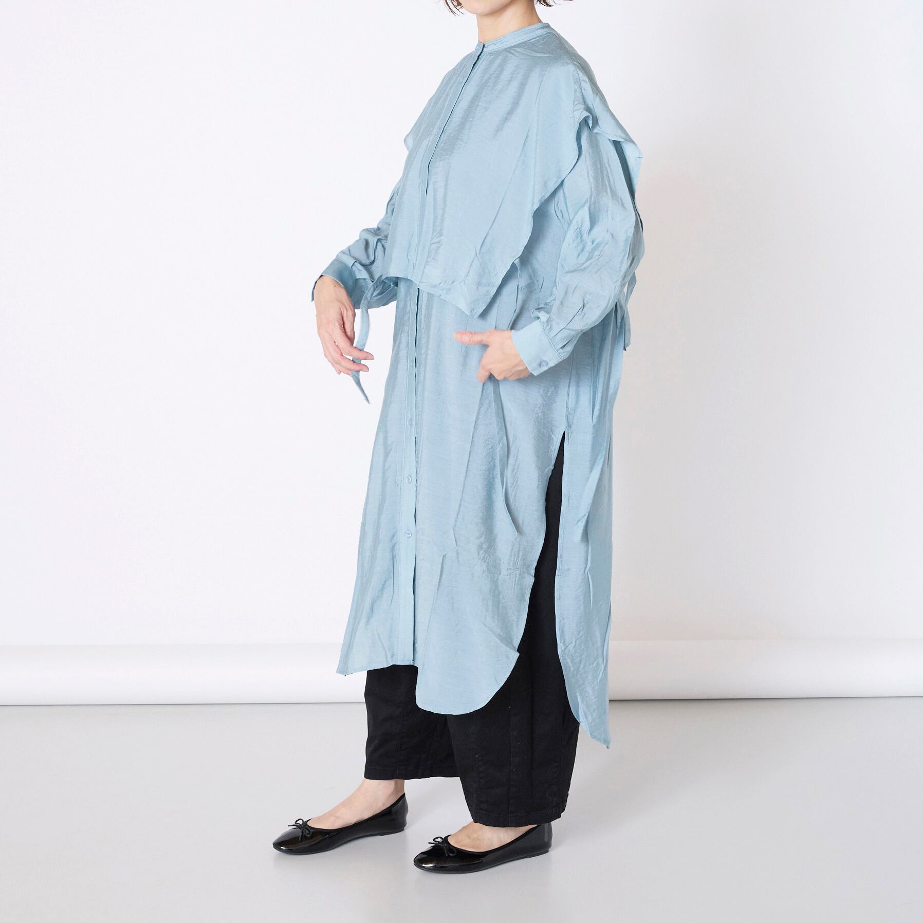 バンドカラーデザインシャツワンピース BLUE / FREE