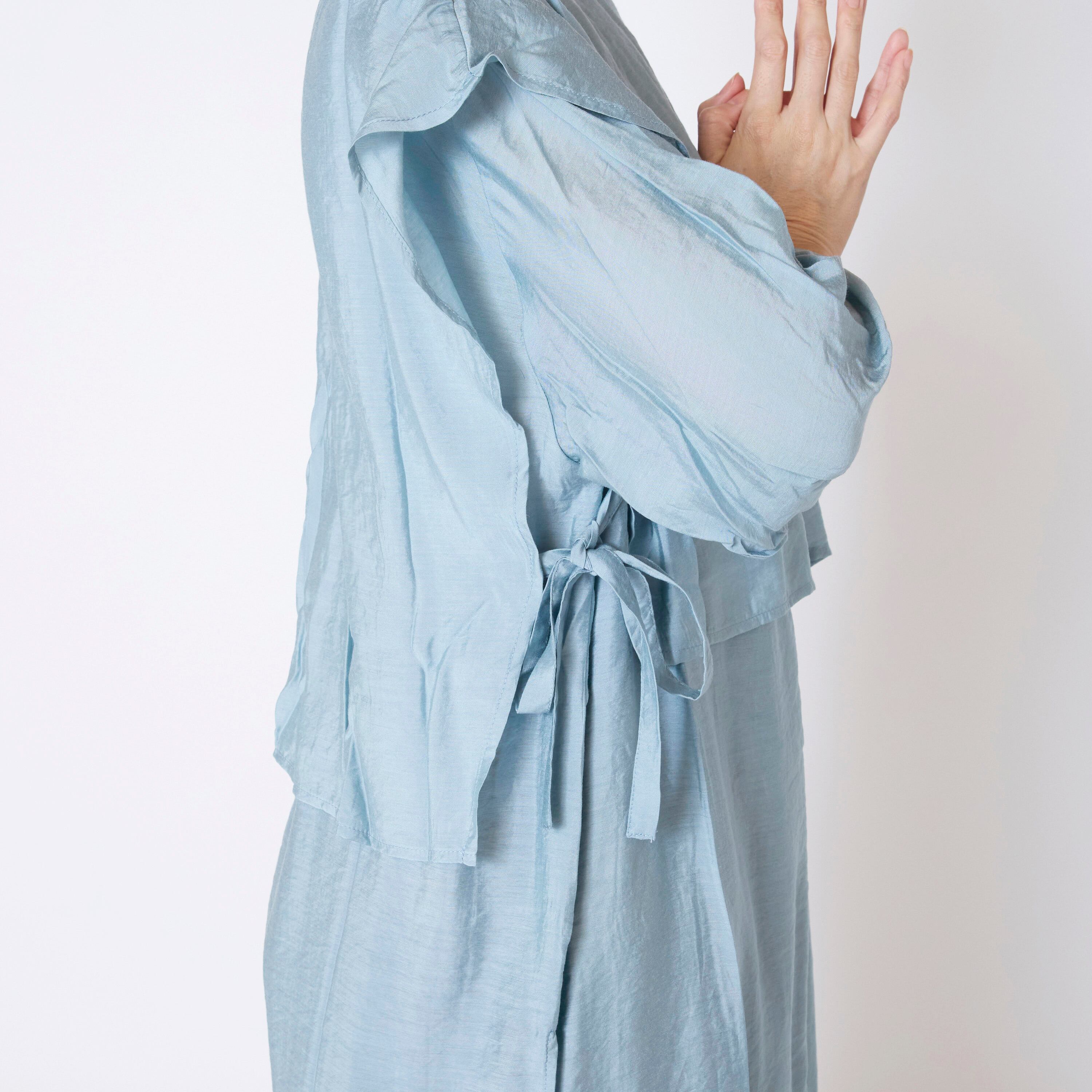透け過ぎないシアー素材が着やすく、光沢感が上品な印象を◎