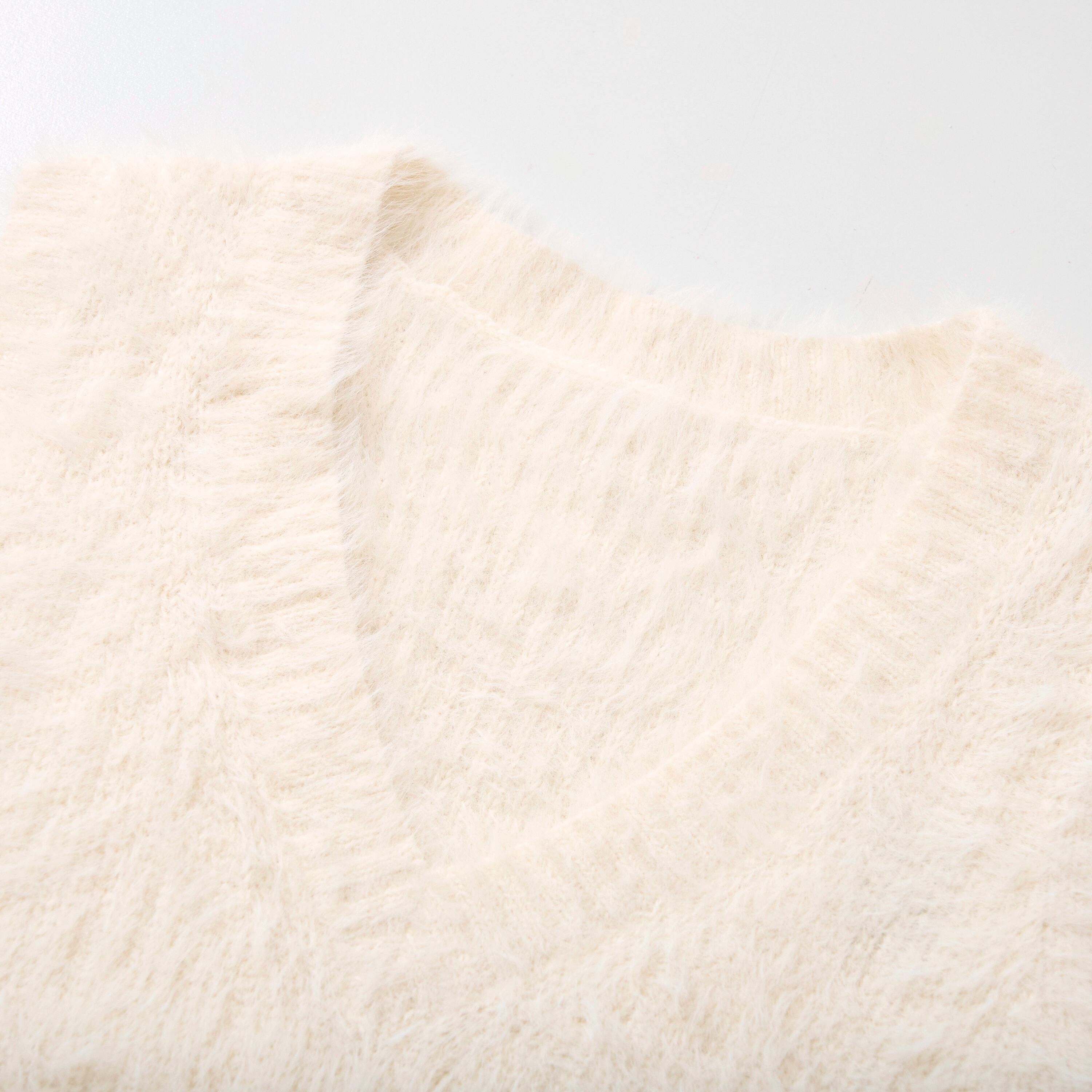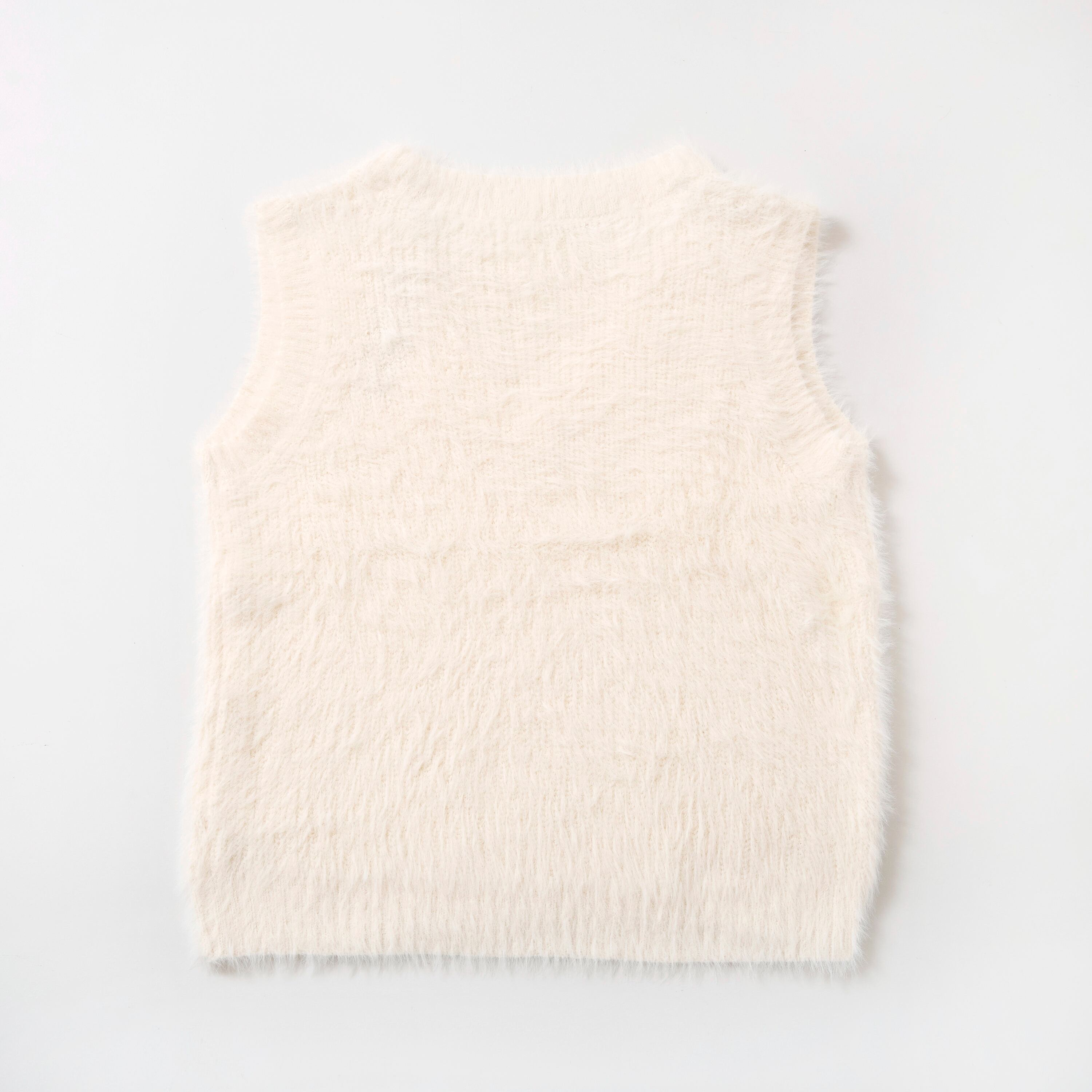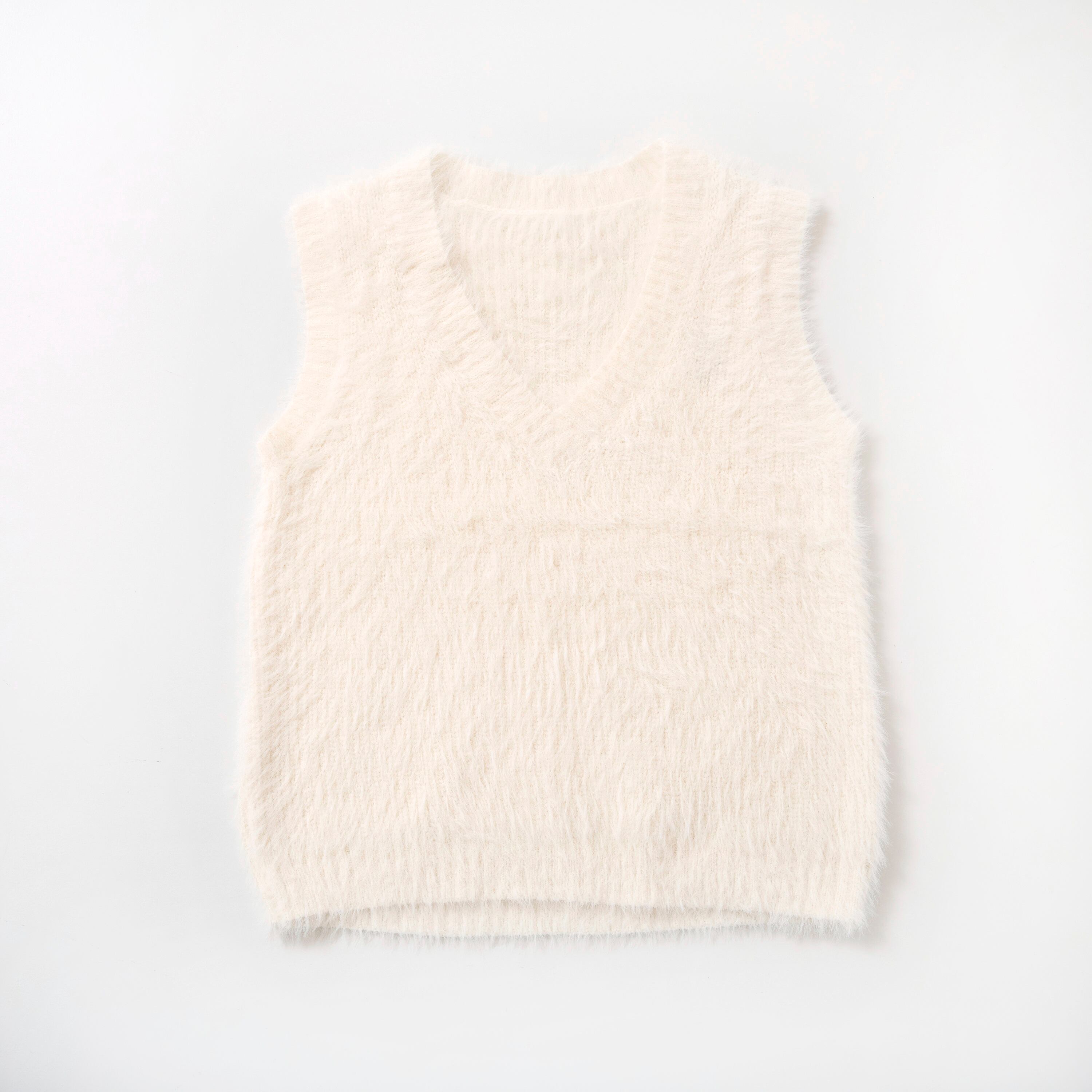 優雅なフェザー感と深めのVネックが洗練された印象を与えるフェザーニットベスト。