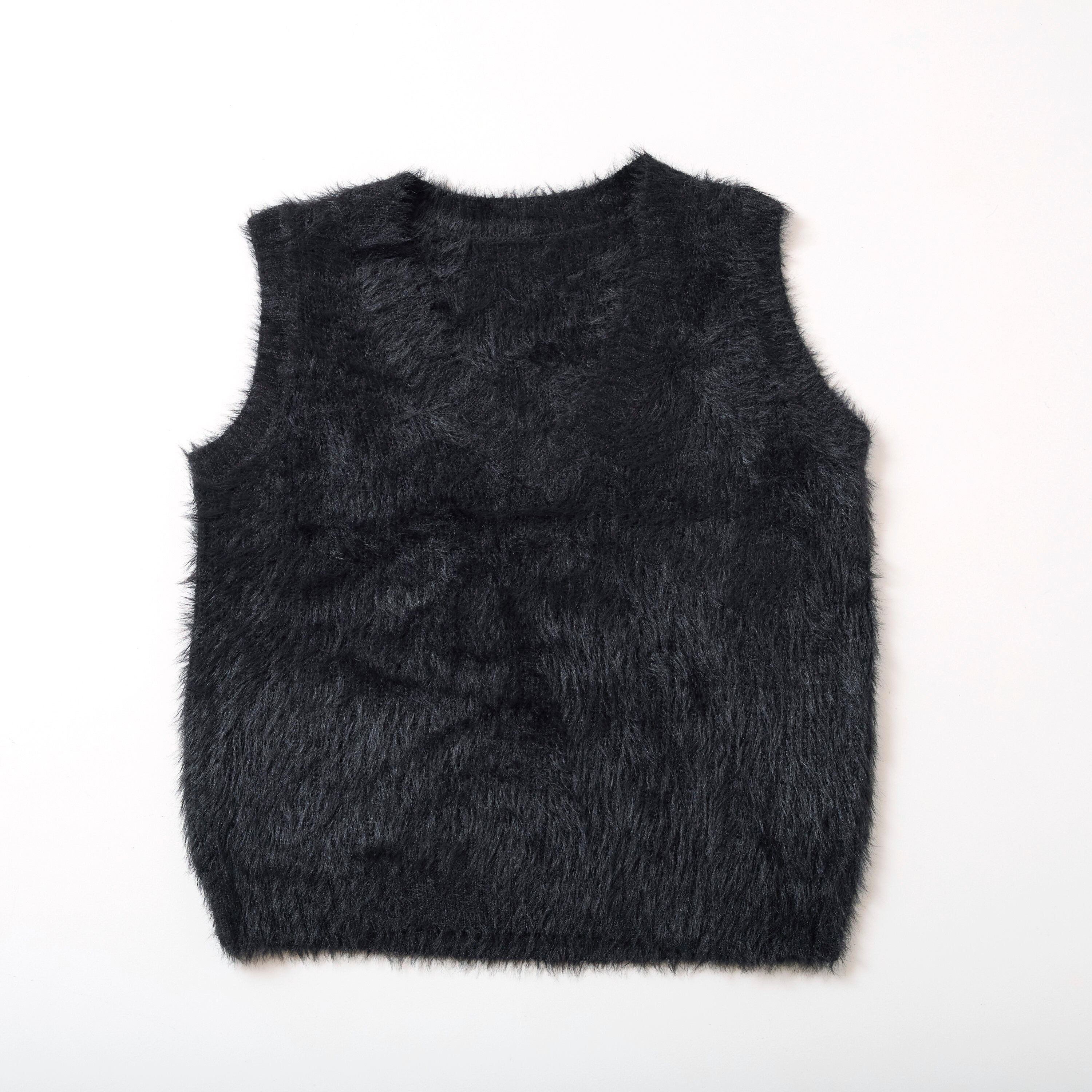 優雅なフェザー感と深めのVネックが洗練された印象を与えるフェザーニットベスト。