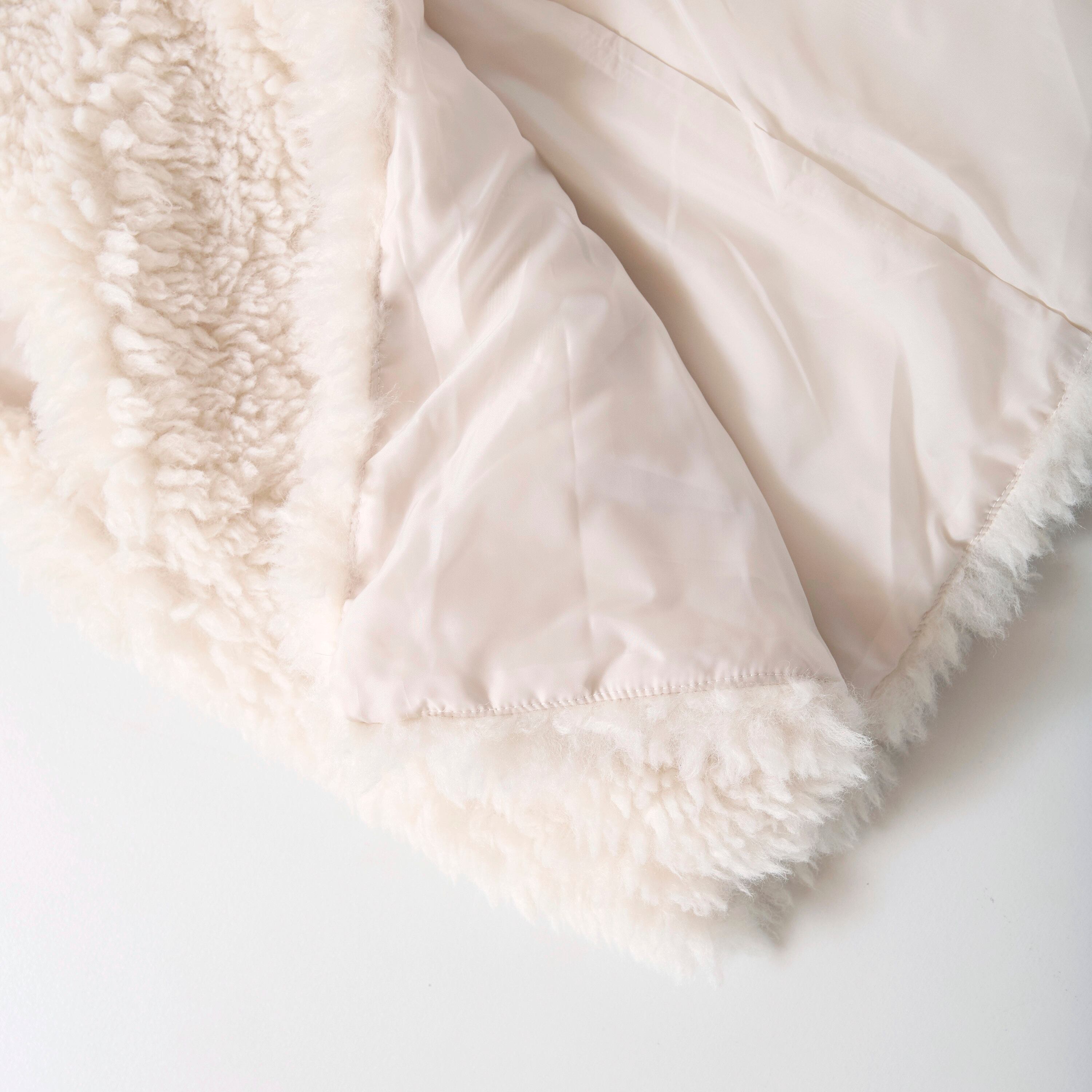 毛足の長いふわふわとした素材で、肌寒い日でも心地よく体を包み込みます。