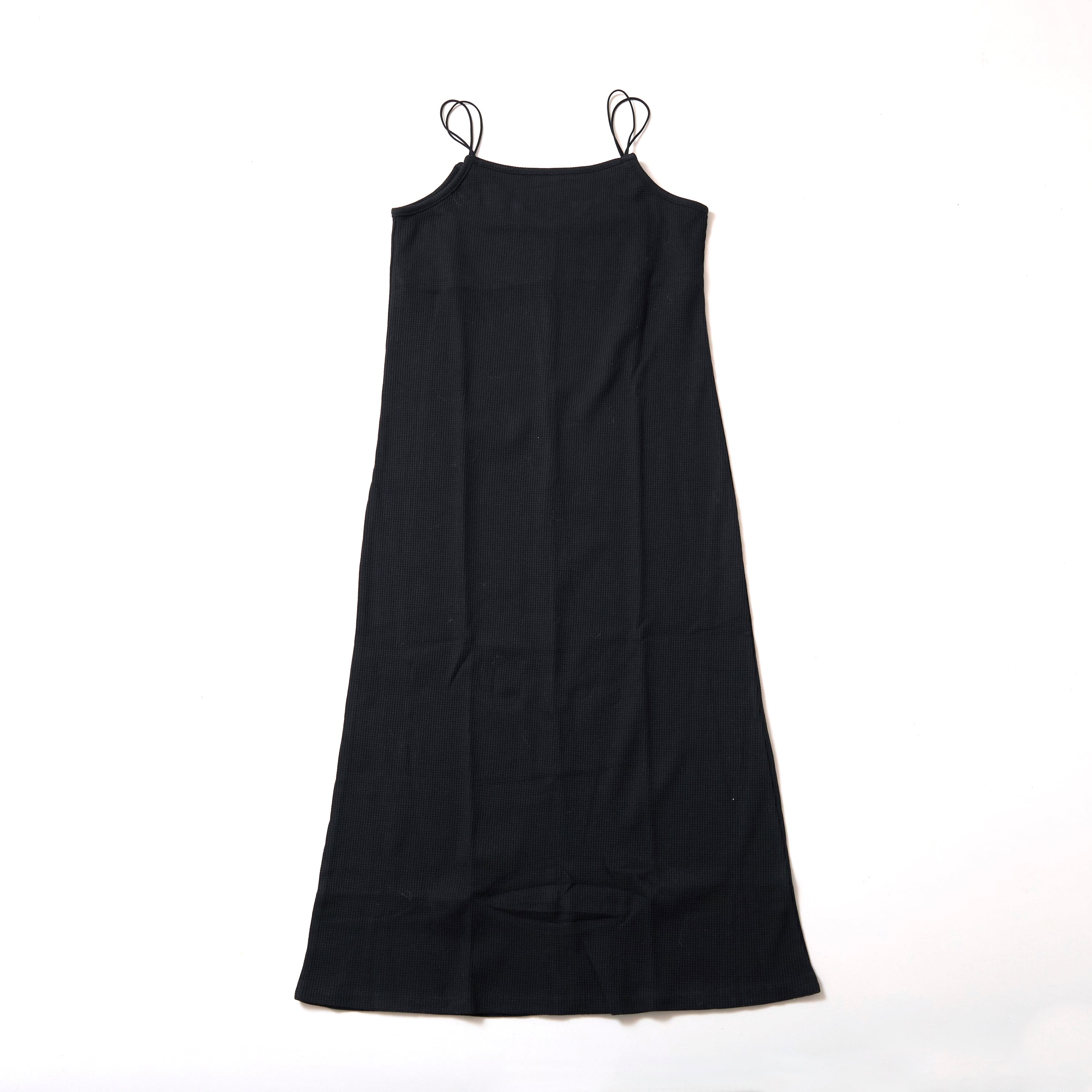 ワッフル素材でややストレッチ性があり、着心地が楽ちんなキャミワンピース。