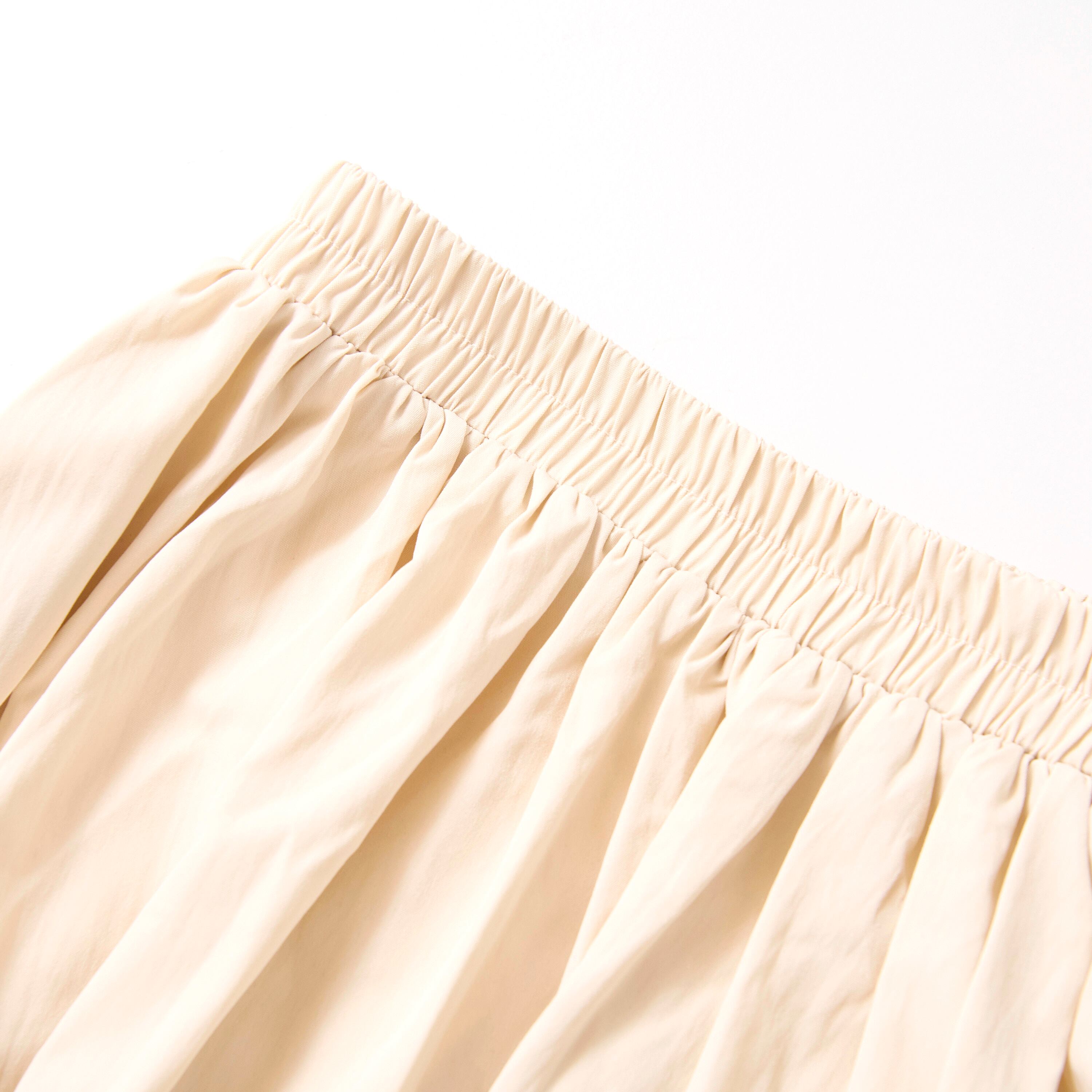 ギャザーボリュームナイロンフレアスカート LIGHT-BEIGE / FREE