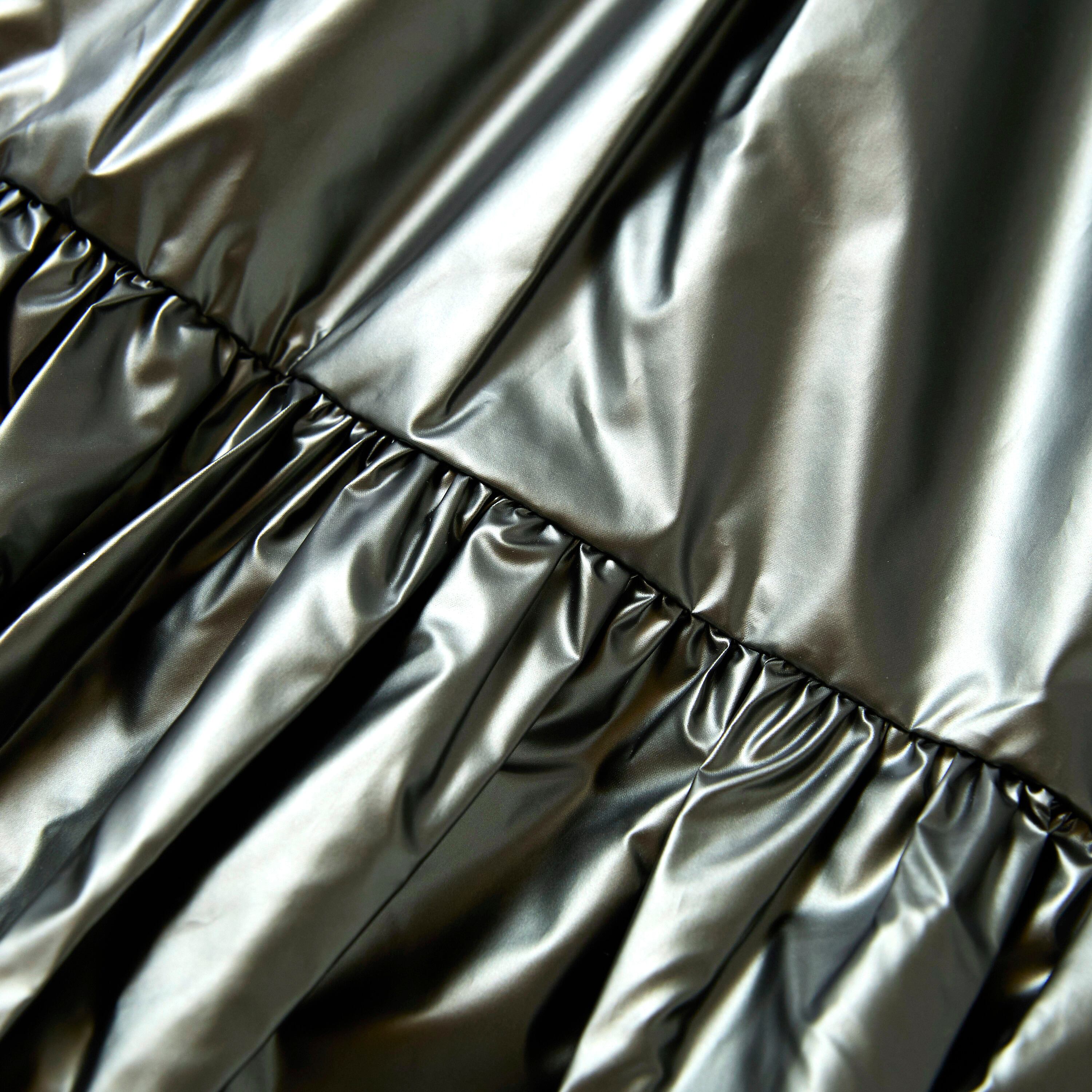 軽くて柔らかい生地感のマットメタリックが魅力!切替ギャザーのフレアスカート