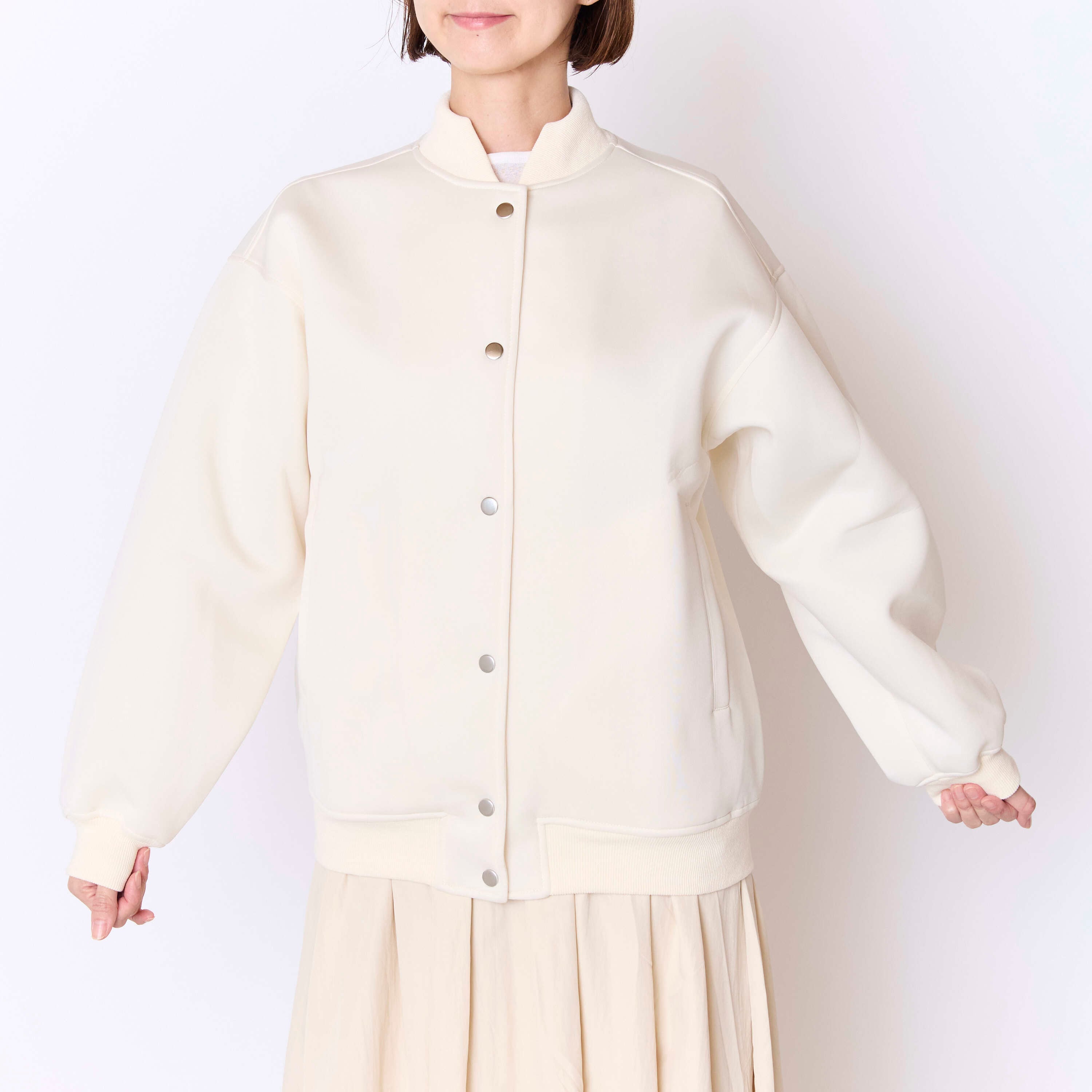 ネックや袖口、裾はリブ仕様で、ラフに羽織りやすいスタジャン風のデザインです。