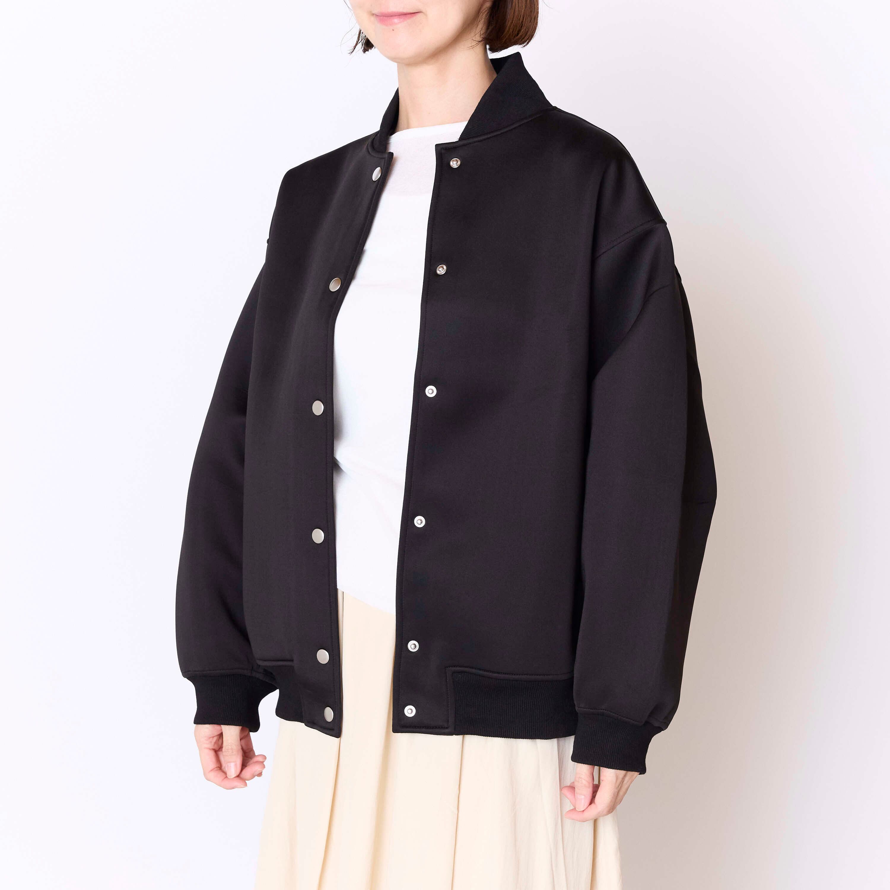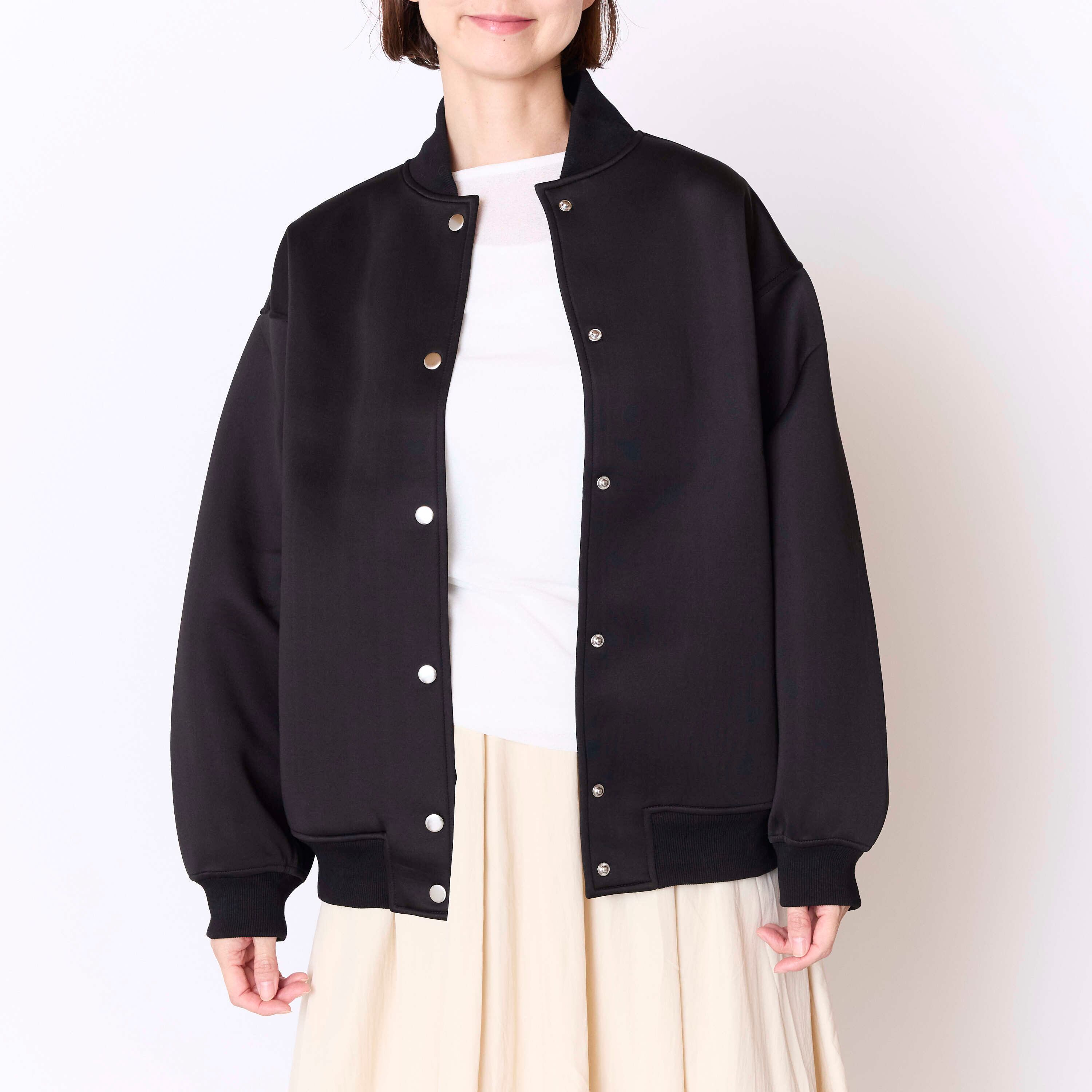 ネックや袖口、裾はリブ仕様で、ラフに羽織りやすいスタジャン風のデザインです。