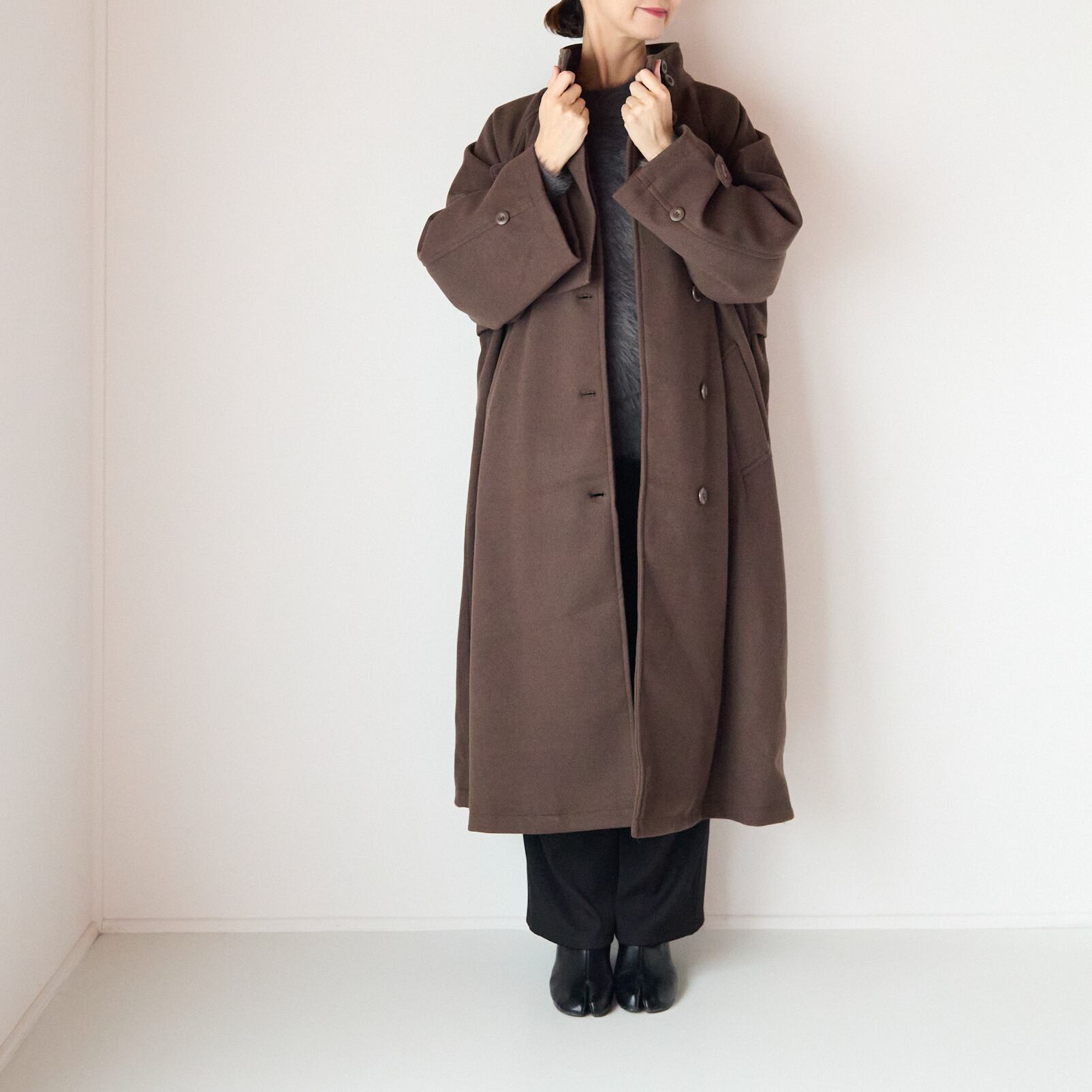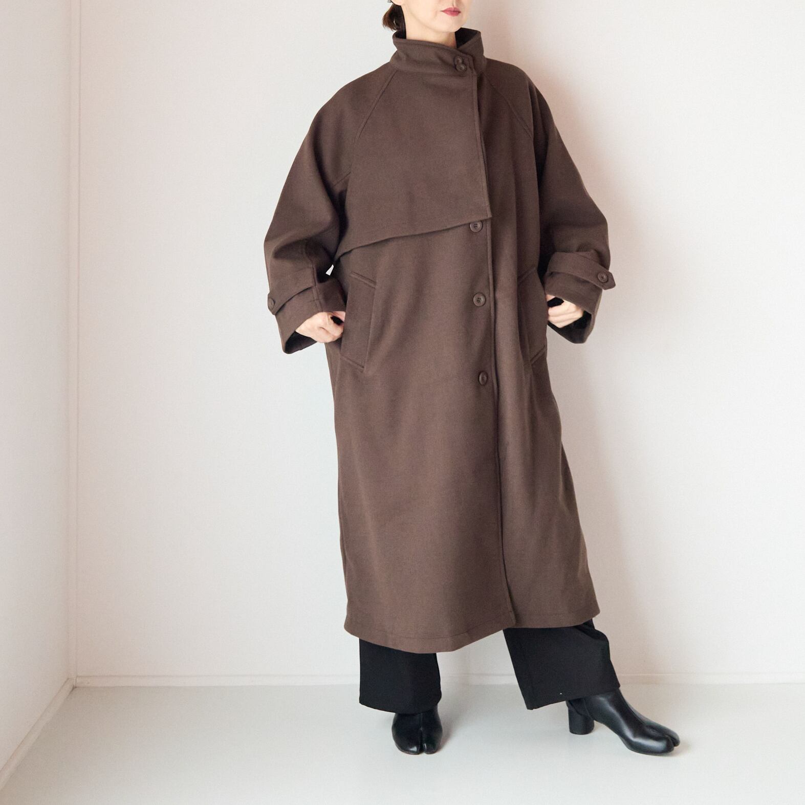 スタンドカラーケープコート BROWN / FREE