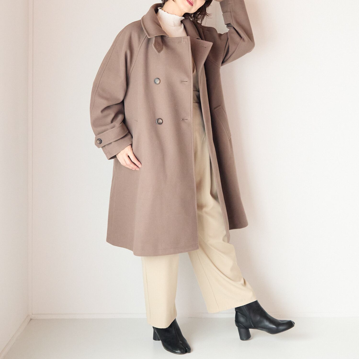 ウールライクな生地感が快適な着心地で、通勤シーンにも活躍いただける大人コートです。