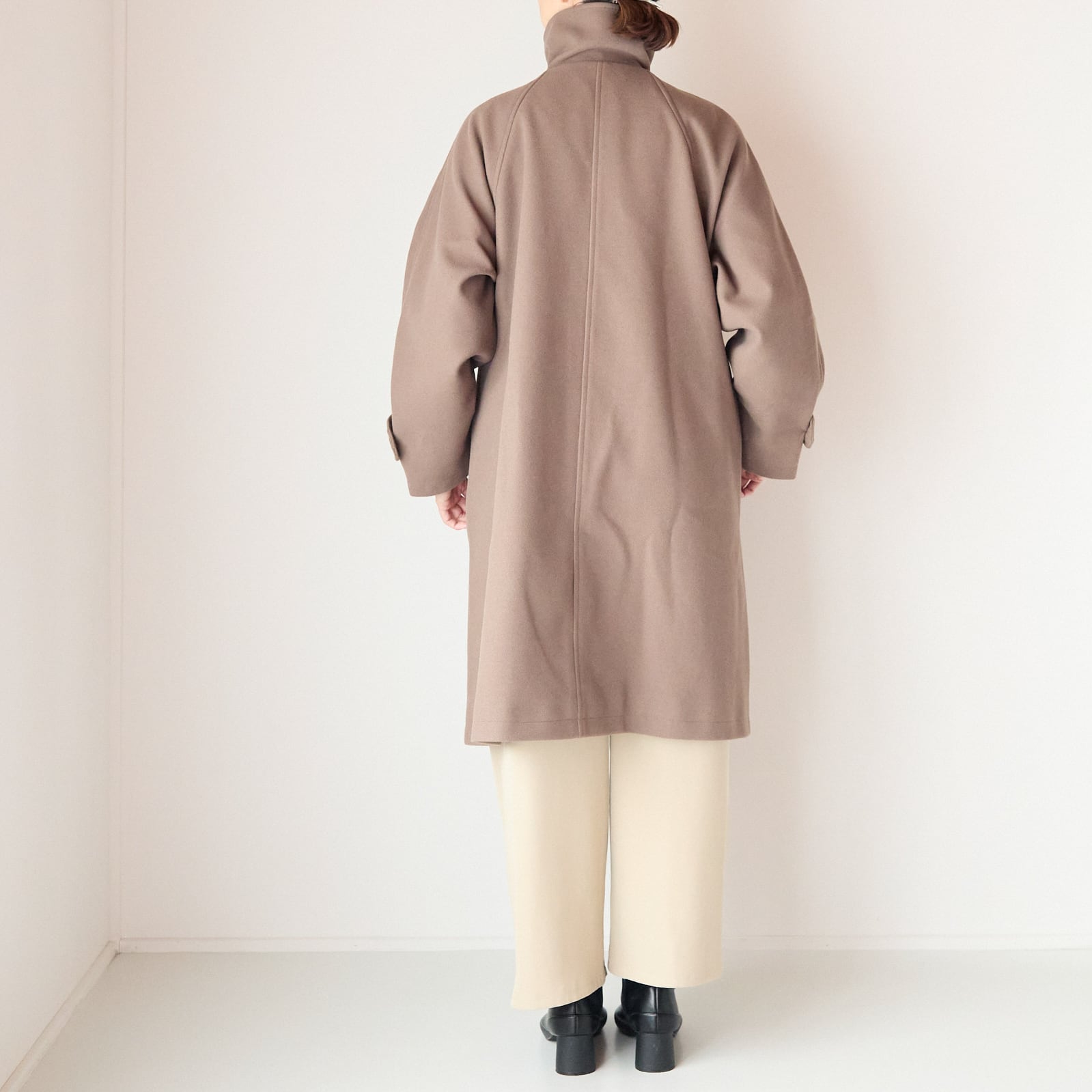 ゆったりめのシルエットでニットに羽織ってもごわつかず、ラグラン切替が体型をカバーしてくれる優秀アイテムです。