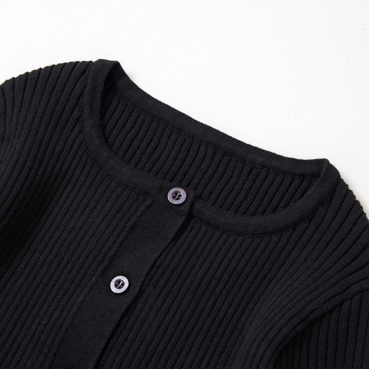 ミニマルシックを纏う。リブ編みクルーネックカーディガン